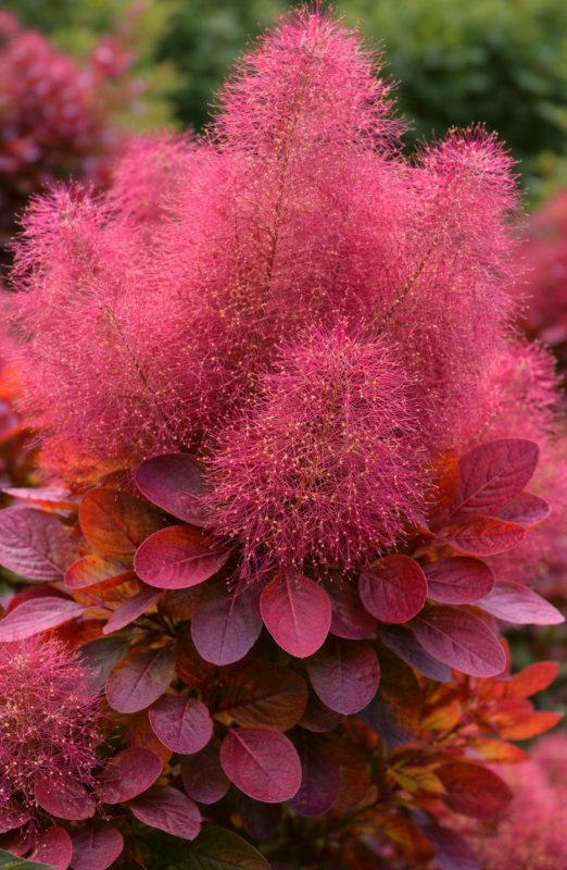 Ruj vlasatá (škumpa vlasatá) - pomalu rostoucí okrasný rozložitý hustý keř, na podzim ho zdobí dlouhé načervenalé "vlasy"