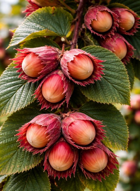 Syrena je moderní odrůda s velkými kulovitými oříšky v tenké skořápce a chutným jádrem, vhodná k přímé konzumaci i zpracování.
