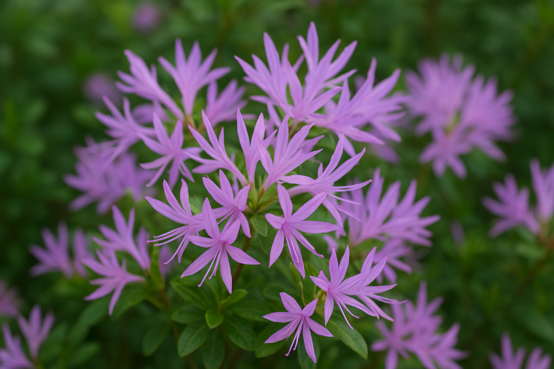 Elegantní azalka s výjimečným hvězdicovitým tvarem květů v odstínech lila, levandulové a světle růžové
