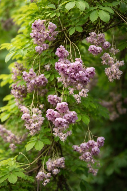 Popínavá dřevina pocházející z východní Asie s dekorativními listy a neobvykle fialovými květy s jemnou vůní.