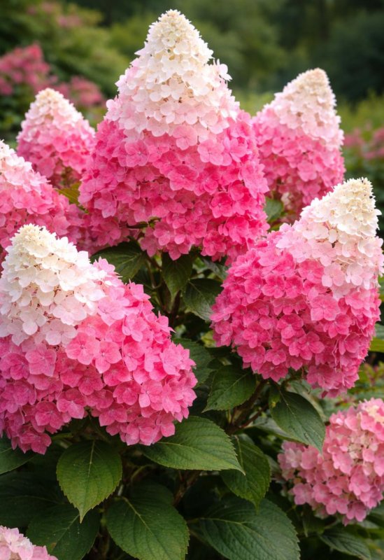 Hortenzie latnatá (hydrangea paniculata) DIAMANT ROUGE kvete od července do září, barva středně velkých květů je bílorůžová, pak červená, koncem léta purpurově červená. Dorůstá do výšky 1 - 1,3 metru.