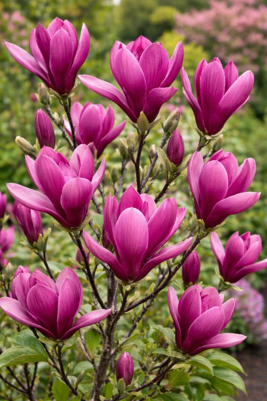 Nejtmavší odrůda magnolie, květy tmavě vínově červené až fialové, asi 12,5 cm velké