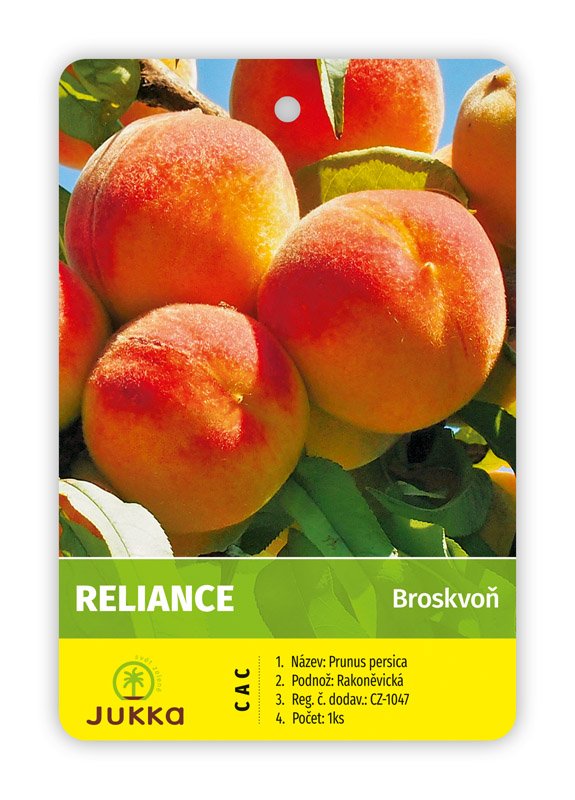 Broskvoň Reliance je kanadská poloraná odrůda, její růst je středně bujný. Plody jsou středně velké, kulaté, žluté s tmavě červeným líčkem, sklízíme je v druhé polovině července. Dužina broskvoně Reliance je oranžová, pevná, sladká a šťavnatá, aromatická, dobře jde oddělit od pecky. Plodnost je velká a pravidelná. Odolná proti kadeřavosti, mrazuvzdorná. Nenáročná na polohu, ale vyžaduje úrodné půdy.