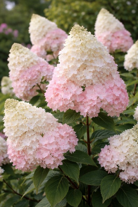 Hortenzie latnatá (hydrangea paniculata) PHANTOM kvete od července do září, barva květů je zprvu čistě bílá, koncem léta lehce růžová. Dorůstá do výšky 1,5 - 2 metry.