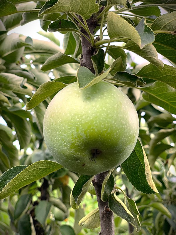 Podzimní odrůda sloupovité jabloně s atraktivními zelenými plody. V kontejneru