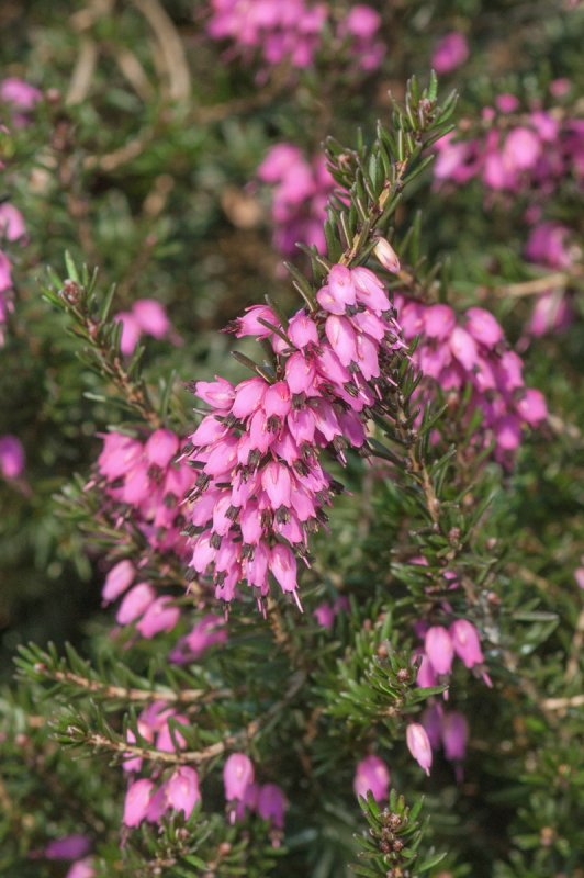 Stálezelený půdopokryvný keř s malými růžovofialovými zvonkovitými květy. Latinsky ERICA DARLEYENSIS